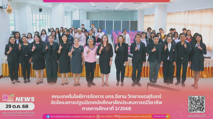 คณะเทคโนโลยีการจัดการ มทร.อีสาน วิทยาเขตสุรินทร์ จัดโครงการปฐมนิเทศนักศึกษาฝึกประสบการณ์วิชาชีพ ภาคการศึกษาที่ 2/2568