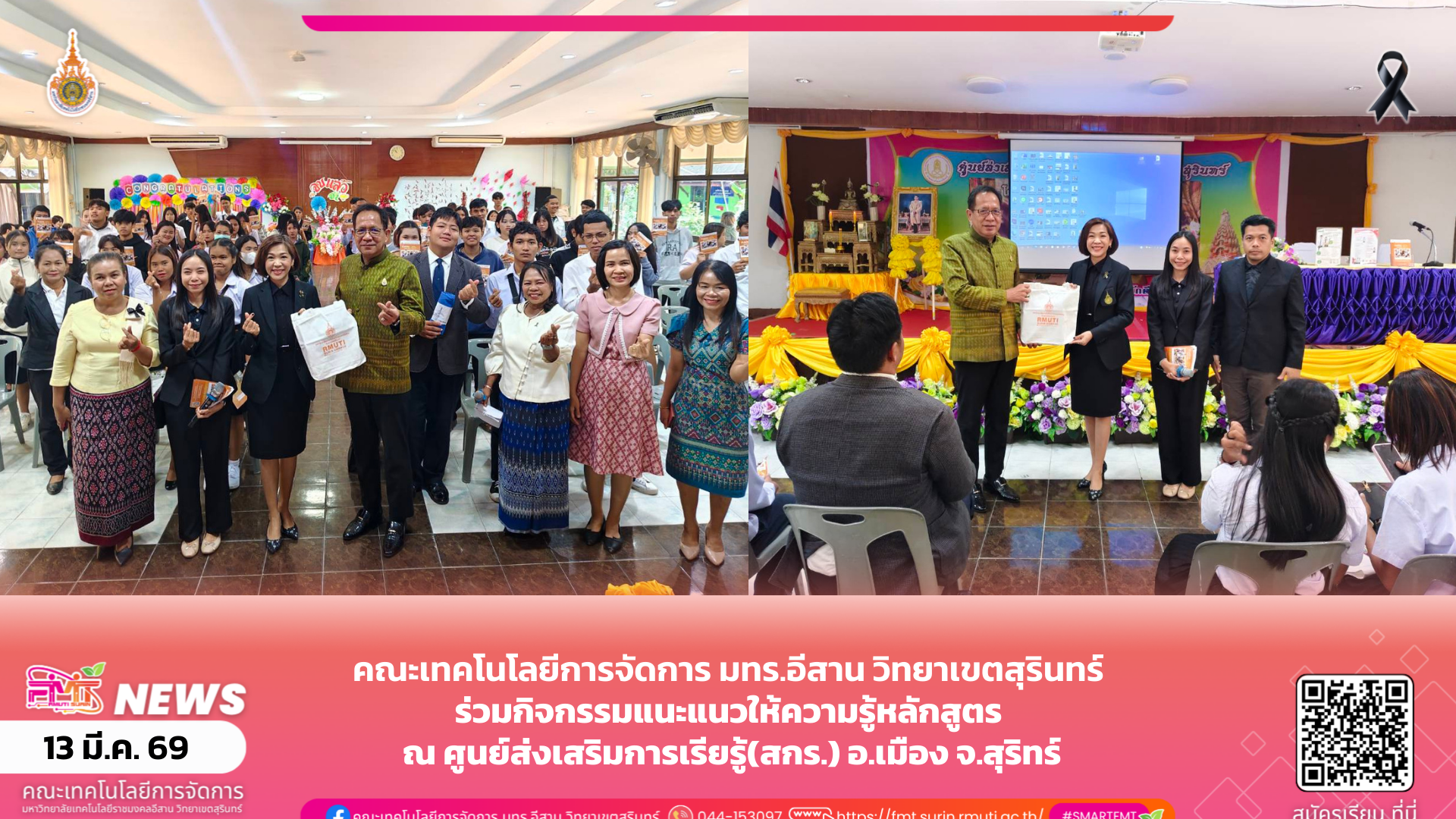 คณะเทคโนโลยีการจัดการ มทร.อีสาน วิทยาเขตสุรินทร์ ร่วมกิจกรรมแนะแนวการศึกษา ณ ศูนย์การเรียนรู้ อ.เมืองสุรินทร์ จังหวัดสุรินทร์